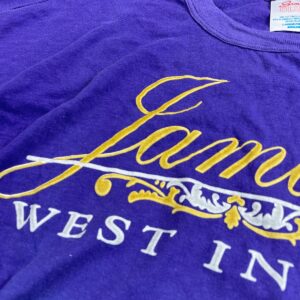 *AS-IS* JAMAICAN WEST INDIES METALLIC VELVET FONT GRAPHIC T SHIRT
