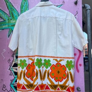 *AS-IS* RAD! 1960S-70S 100% COTTON BARKCOTH FLOWER POWER PRINT HAWAIIAN SHIRT