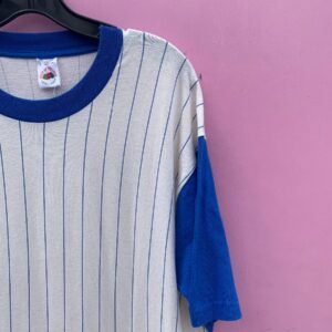 BLUE & WHITE STRIPED BASEBALL T-SHIRT SINGLE STITCHED RIBBED COLLAR
