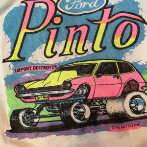 AS-IS RAD! & RARE! NEON FORD PINTO HEAT TRANSFER GRAPHIC CHECKERED BASEBALL SLEEVE SHIRT