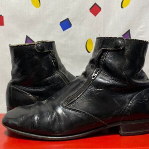 1970S DEADSTOCK ROUND TOE LEATHER ZIP-UP HALF CALF GOLD BUCKLE BOOTS STACKED HEEL