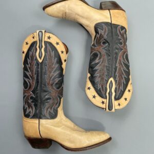 GORGEOUS! NUBUCK & BLACK LEATHER STAR CUTOUT COWBOY BOOTS