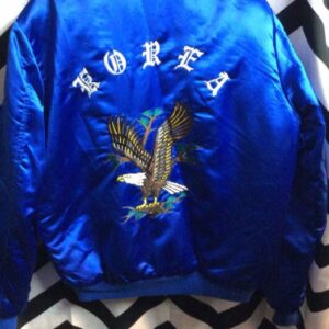 USS MIDWAY KOREAN TOUR NAVY SOUVENIR BOMBER JACKET W/PATCHES & EMBROIDERED EAGLE BACK DESIGN