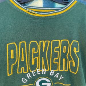 AS-IS PERFECTLY DISTRESSED SUPER SOFT EMBROIDERED GREEN BAY PACKERS STRIPED CUFFS & COLLAR PULLOVER CREWNECK SWEATSHIRT