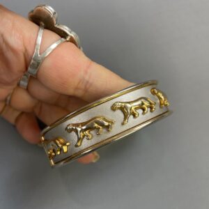 HEAVY GOLD & SILVER JAGUAR BANGLE HINGGED BRACELET