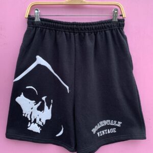 HEAVY COTTON BLACK SWEATSHIRT SHORTS W/ GRIM REAPER BOARDWALK VINTAGE PUFF PRINT