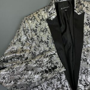 METALLIC SILVER BLAZER JACKET BLACK SATIN LAPELS