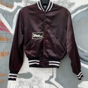 *AS-IS* NBC PEACOCK PATCH EMBROIDERED SATIN BOMBER JACKET JUDAS PRIEST