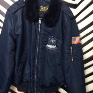 US AIR NATIONAL GUARD BOMBER JACKET – ZIP-UP W/FAUX FUR COLLAR & EAGLE BACK PATCH