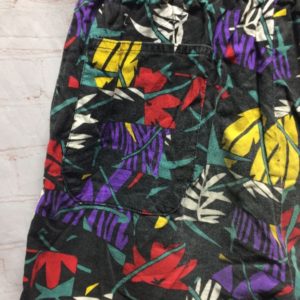 COTTON BRIGHT NEON COLORED LEAF PRINT SHORTS