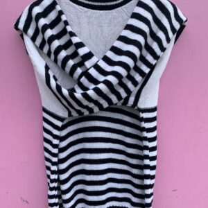 CUTE! BLACK STRIPE ON WHITE KNIT SWEATER RIBBED COLLAR AND CUFFS