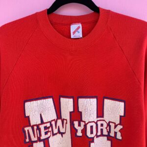 *AS-IS* NY NEW YORK PUFF CRACKLE GRAPHIC RAGLAN CREWNECK SWEATSHIRT