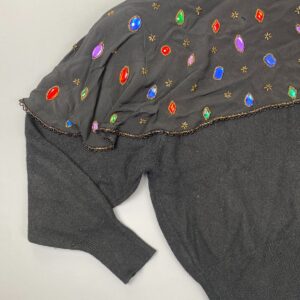 UNIQUE! 1980S ANGORA SWEATER ATTACHED BEADED & JEWELED CAPELET