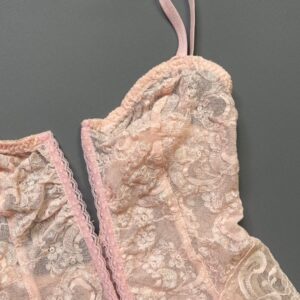 SEXY BABY PINK ONE PIECE LACE BODYSUIT DEEP V FRONT BONING