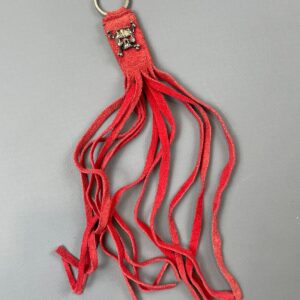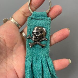 1990S SKULL & CROSSBONES PENDANT SUEDE LEATHER LONG FRINGE KEYCHAIN
