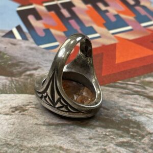 OVAL JASPER STONE STERLING SILVER RING DECORATIVE SIDES