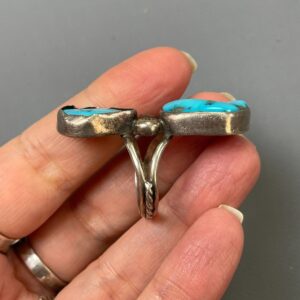 *AS-IS* DOUBLE NUGGET TURQUOISE RING 925 STERLING SILVER TWISTED BAND *SIGNED S.A.