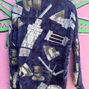 RAD! RETRO 1970S WESTERN CUT DRIP OIL PAINT PRINT SHORT SLEEVE BUTTON DOWN POLYESTER TOP