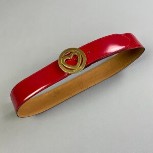 SO CUTE! HIGH POLISHED CHERRY RED LEATHER BELT GOLD HEART BUCKLE- MADE IN ITALY