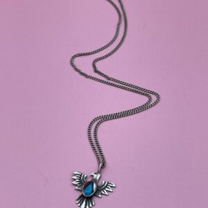 925 THUNDERBIRD PENDANT NECKLACE TURQUOISE & CORAL INLAY THIN CHAIN