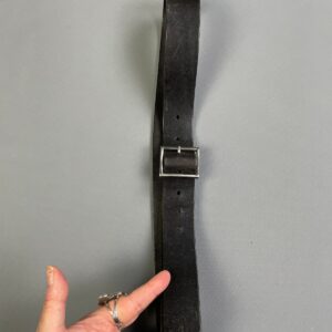 CLASSIC BLACK LEATHER DRESS BELT SIMPLE SQUARE SILVER BUCKLE, ANGLED BELT TIP