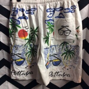 SHORTS – ELASTIC WAIST – PATTAYA – PALM TREE & SUNGLASSES BEACH DESIGN