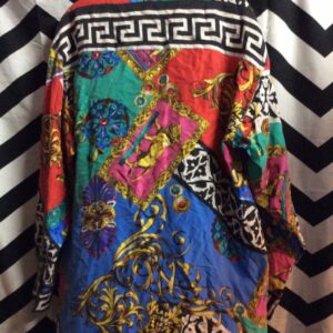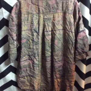 BLOUSE – SILK – PULLOVER – PEASANT STYLE – LONG OVERSIZED SLEEVES – MULTI-COLORED PRINT DESIGN