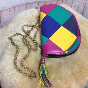 LEATHER BAG COLOR-BLOCK HARLEQUIN DESIGN W/ CHAIN STRAP