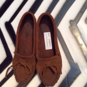 TAN SUEDE MOCCASINS SIZE 7.5 – 8