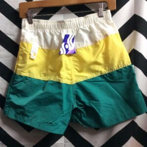 OCEAN BREEZE SWIM SHORTS – ELASTIC WAIST – HORIZONTAL COLOR BLOCK DESIGN