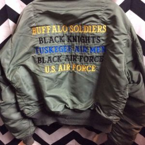 MILITARY AIR FORCE BOMBER JACKET EMBROIDERED BUFFALO SOLDIERS, BLACK KNIGHTS