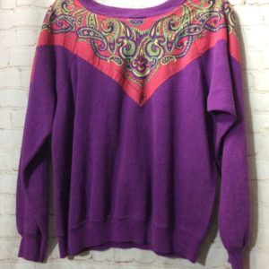 PAISLEY DESIGN KNIT PULLOVER VELOUR SWEATER