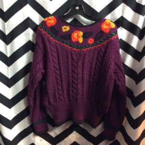CABLE KNIT PULLOVER SWEATER BRIGHT FLORAL EMBROIDERY