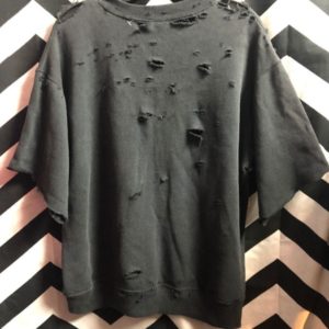 DISTRESSED PULLOVER SWEATSHIRT W/ CUT-OFF SLEEVES