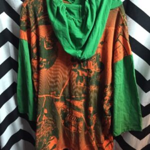 PULLOVER SWEATSHIRT – FADED TIE DYED FABRIC – VERTICAL STRIPES FRONT & BACK – HORIZONTAL STRIPES ON SLEEVES