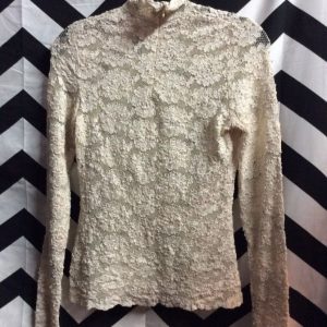 1990’S TOP – PULLOVER – HIGH NECK – LACE FLORAL DESIGN FABRIC