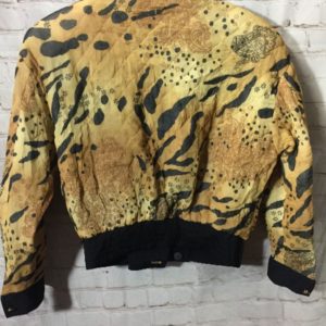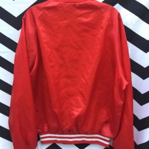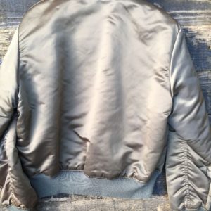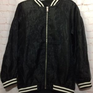 CUSTOM ROLLS ROYCE SEQUIN PATCH BOMBER JACKET – ZIP-UP – SHEER – TAFFETA – STRIPED COLLAR/CUFFS/BOTTOM