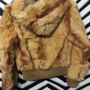 RETRO HOODED FUR JACKET ZIP-UP W/KNIT PANEL TRIM