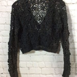 CROCHET PULLOVER SWEATER W/ FLORAL PATTERN