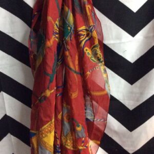 VINTAGE SCARF – SILK – SHEER W/ROPES & BRIDLES PRINT DESIGN