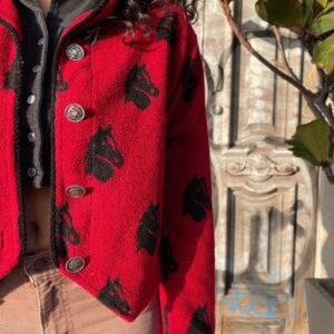 1990S ALL OVER HORSE PRINT COLLARED BUTTON UP FLEECE JACKET