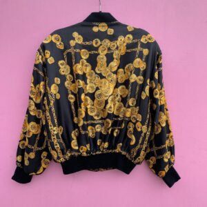 AWESOME 1990S GEOMETRIC DESIGN FUZZY BOMBER JACKET