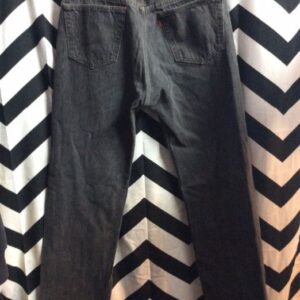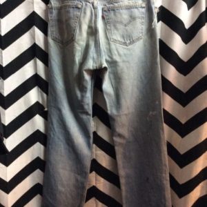 LEVIS DENIM JEANS 501 RED TAB W/ SQUARE RIPS & BLEACH SPOTS