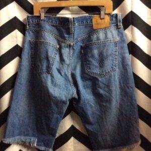 LEVIS DENIM SHORTS – CUTOFF – LONG CUT – 501 – RED TAB – ACID WASHED