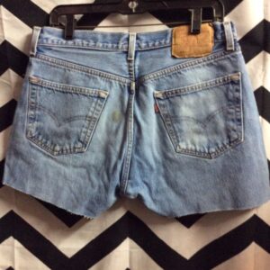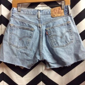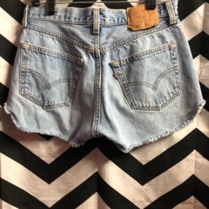 LEVIS DENIM SHORTS – HEMMED – 501 – RED TAB – BLEACH WASHED