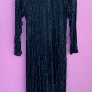 1990S WHIMSICAL SHEER GREEN LACE PLEATED LONG SLEEVE MIDI DRESS