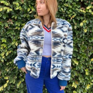 AWESOME 1990S GEOMETRIC DESIGN FUZZY BOMBER JACKET