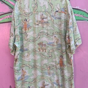 SWEET! 100% RAYON, RETRO CLOUDS & SURF PRINT HAWAIIAN SHIRT, COCONUT BUTTONS