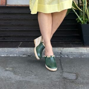 AWESOME GREEN LEATHER ESPADRILLE WEDGE MULES