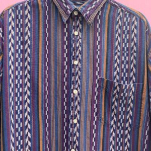RAD! ALLOVER RESORT TOWN PRINT SLINKY RAYON SHIRT COCONUT BUTTONS